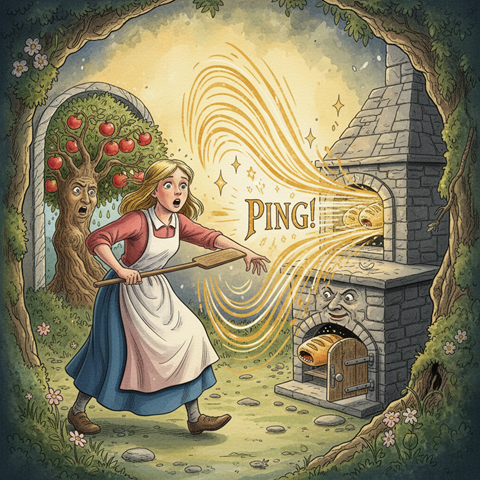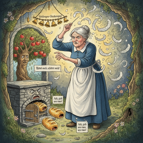 Frau Holle ist nicht nur die Herrscherin über das Wetter und die Belohnung für Fleiß, sie ist auch die unbekannte Urmutter des Haushalts-Audiosignals – die Erfinderin des "Fertig"-Pings. Ein märchenhaftes Echo in unserer digitalen Realität.